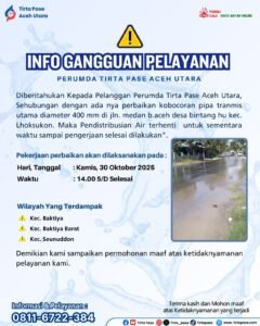 Aceh Utara – Perusahaan Umum Daerah (Perumda) Air Minum Tirta Pase telah menurunkan daya tarif untuk pelanggaran perusahaan setempat.