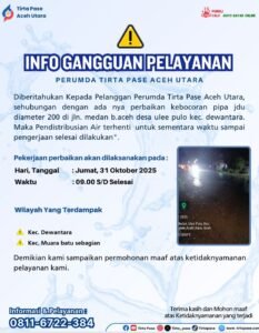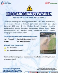 Direktur Utama (Dirut) Perumda Tirta Pase, Imran, menyampaikan hal ini dalam sambutannya saat peringatan Air Sedunia yang diadakan di Wisata Taman Air kawasan Instalasi Pengolah Air (IPA) III Desa Meunasah Reudeup, Kecamatan Lhoksukon, Aceh Utara, Sabtu (22/3/2025) sore.