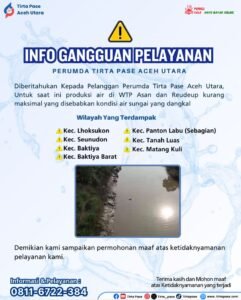 Diberitahukan Kepada Pelanggan Perumda Tirta Pase Aceh Utara, Untuk saat ini Produksi air di WTP Asan dan Reudeup kurang maksimal yang disebabkan kondisi air sungai sangat dangkal.