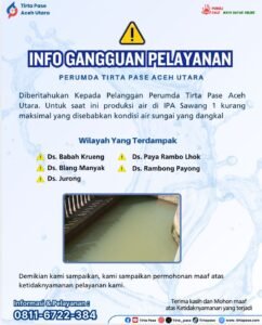 Diberitahukan Kepada Pelanggan Perumda Tirta Pase Aceh Utara, Untuk saat ini Produksi air di IPA…