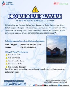 PERUMDA TIRTA PASE ACEH UTARA Diberitahukan Kepada Pelanggan Perumda Tirta Pase Aceh Utara, Untuk saat…